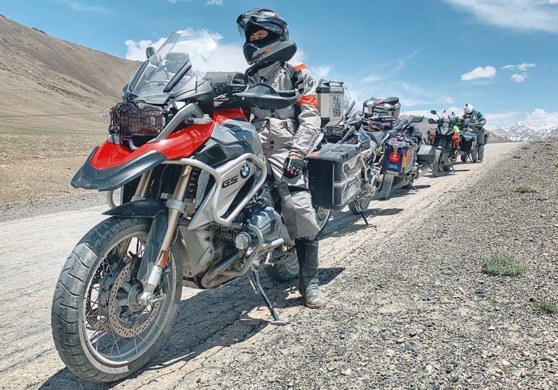 - Englischsprachiger tibetische Motorradtourguide auf eigenem Motorrad ab China