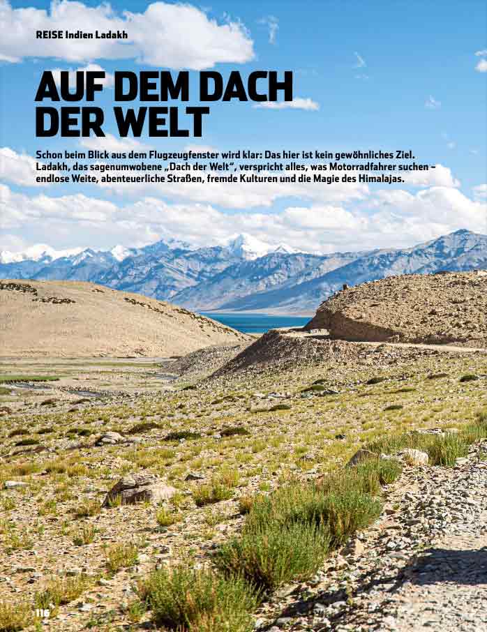 Dieser redaktionelle Beitrag im MOTORRAD-Magazin zeigt unsere Ladakh 3 Lakes Tour, bei der wir endlose Weiten, abenteuerliche Straßen, fremde Kulturen und die Magie des Himalayas erleben. Schön wäre es gewesen, wenn im Artikel erwähnt worden wäre, dass es sich hierbei um ein Erlebnis aus dem Jahr 2017 handelte, als wir nachts noch campen mussten. Seit etwa 2019 übernachten wir während der gesamten Tour in Hotels.
